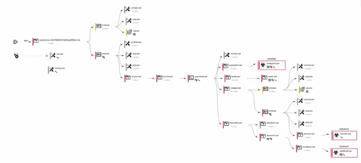 Hasta este punto, esta campaña sigue los procesos habituales que vemos en varios casos de malware desde hace tiempo. Sin embargo, al analizar con más detalle la cadena de infección vemos como los delincuentes han querido ir un poco más allá con esta campaña y tratar de maximizar el impacto empleando varias amenazas, a costa de ser poco sigilosos y lanzar numerosos procesos en el sistema infectado, lo que facilita su detección.