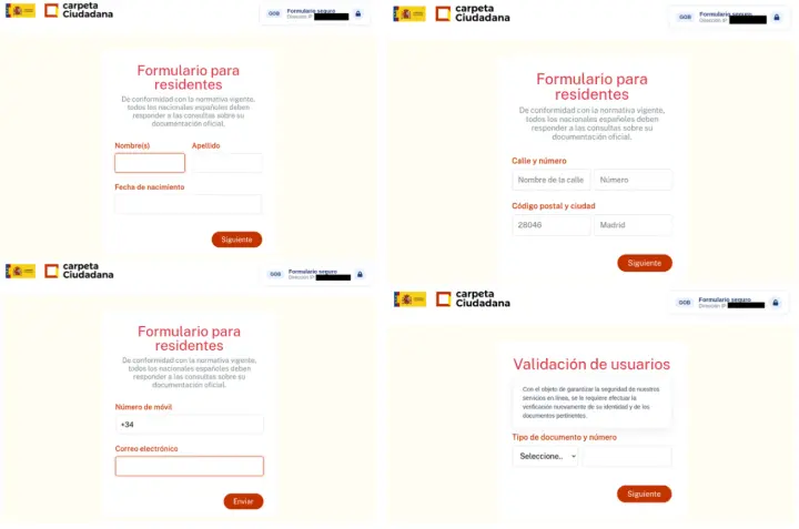 consecutivas donde se solicitan datos personales como el nombre, dirección