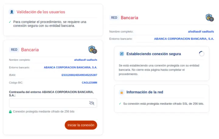A partir de este punto, y dependiendo del número de cuenta introducido, se generará un nuevo paso donde, ya con el nombre de la entidad bancaria, se solicita al usuario que introduzca la contraseña de acceso para poder ingresar al servicio de banca online. Debido a que muchos usuarios de banca online mantienen su DNI como nombre de usuario y este dato ya ha sido solicitado en un paso previo, los delincuentes ya tendrían la información necesaria para entrar, revisar el saldo y tratar de realizar una transferencia a una cuenta controlada, muy probablemente, por un mulero que le reenviará el dinero a cambio de una comisión.
