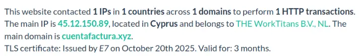 En este punto podemos comprobar de nuevo que estamos ante una campaña de emails fraudulentos puesto que al dominio registrado por los delincuentes se le emitió un certificado justo el día anterior de que comenzaran a propagarse estos correos. La emisión de estos certificados es ya una práctica habitual realizada por los ciberdelincuentes para hacer creer a sus víctimas de que se encuentran en una web legítima al mostrarse el candado de seguridad. No obstante, este certificado solo garantiza que la comunicación entre el dispositivo del usuario y la web se realiza de forma cifrada, no que la web sea legítima o segura.