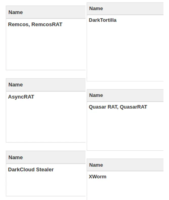 Lo que sorprende de esta campaña es que los delincuentes no han usado solo una amenaza para tratar de comprometer el sistema. Revisando los ejecutables maliciosos descargados hemos encontrado hasta seis infostealers y herramientas de control remoto como las siguientes: